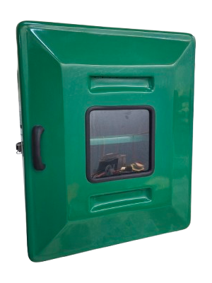 O armário em Fibra de Vidro possui dimensões de 60 x 50 x 30 cm, conta com 1 porta frontal e 1 prateleira central, permitindo melhor organização e separação dos EPI’s. Sua estrutura é reforçada na parte traseira, garantindo maior rigidez e resistência, compensando a flexibilidade natural do material quando comparado aos armários metálicos.